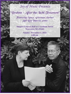 With Tracy McGinnis, bassoon, and Roy Imperio, piano - Faculty Recital, “Brahms – After the Ischl Testament”, December 1, 2024