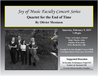 With Tracy McGinnis, bassoon, and Roy Imperio, piano - Faculty Recital, “Messiaen’s Quartet for the End of Time”, February 9, 2019